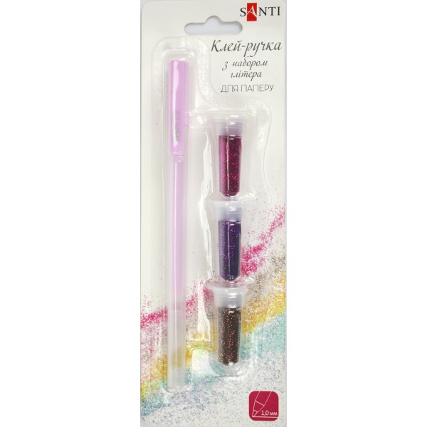 Клей-ручка "Santi" з набором глітера (фіолетовий, рожевий, бронза) №742960(36)