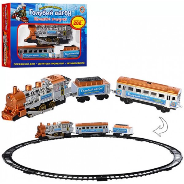 Железная дорога на батарейке музыкальная Голубой вагон свет, длина пути 282см, в коробке 38х26х7см 8040
