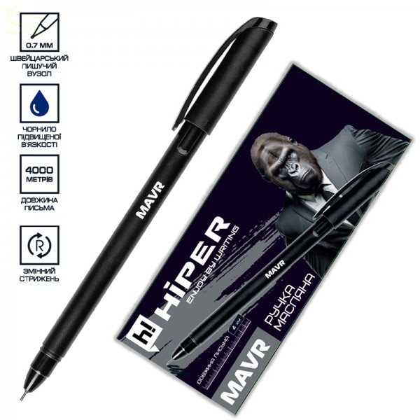 Ручка кульк. масл. "Hiper" №HO-350 Mavr 4км 0,7мм чорна(10)(200)