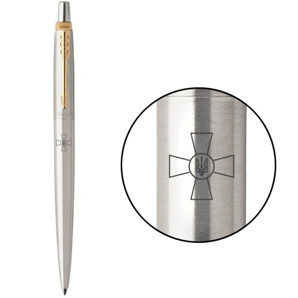 Ручка шариковая Parker Jotter сталь с позолотой эмблема ВСУ №16032_W001b