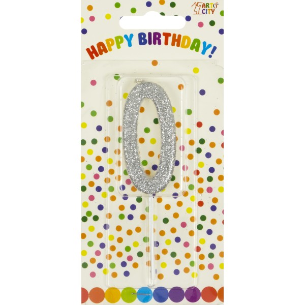 Свеча в торт Цифра-0 серебро на палочке (12)