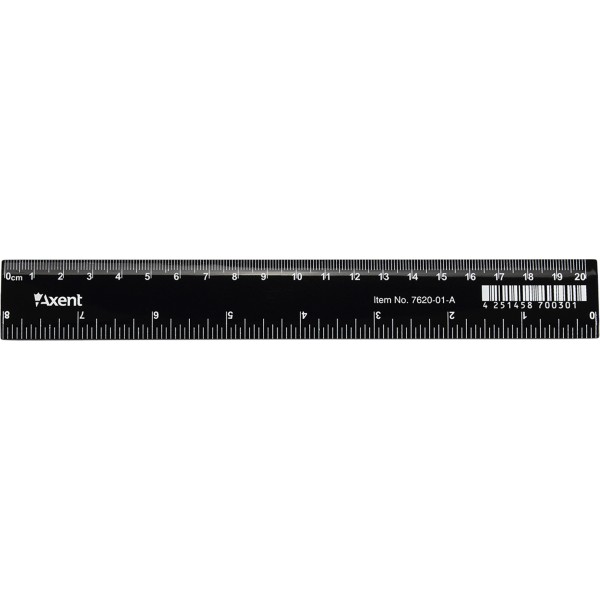 Линейка пластиковая 20 см Axent для шариковой ручки черная (50) 7620-01-А