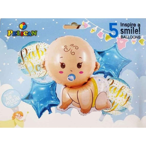 Набор шариков воздушных фольгированных Младенец мальчик 5 шт Pelican (10) №836941