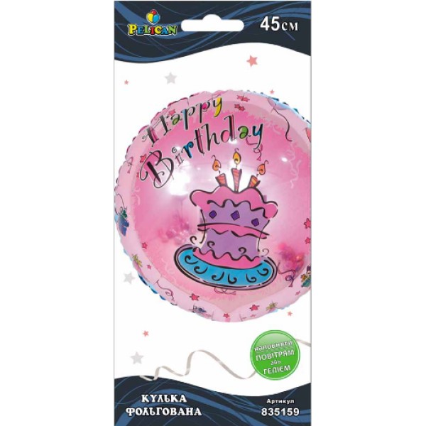 Шарик воздушный фольгированный Happy Birthday торт розовый 45 см Pelican (5) №835159