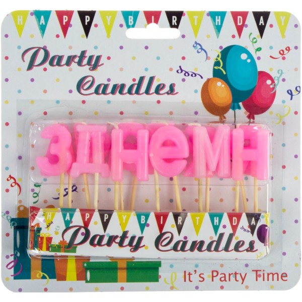 Свечи-буквы С Днем Рождения розовые без присыпки (24)