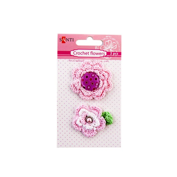 Набор брадс Santi цветы вязаные 4 шт розовые 952617