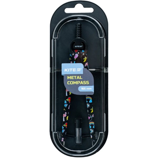 Циркуль "Kite" метал. з принтом,+грифель,чорний у футлярі №K24-415-3(12)