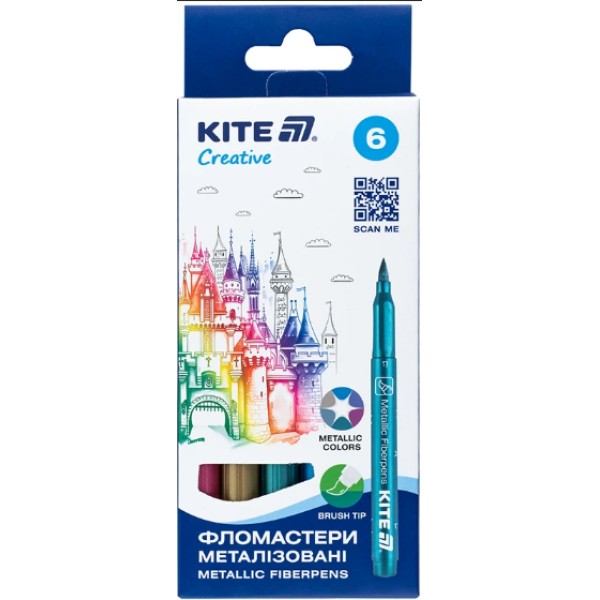 Фломастери-пензлики "Kite" 6кольор. Creative метал. №K-1149(12)(24)(192)