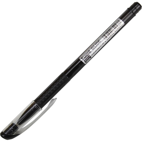 Ручки масляні поєднують переваги кулькових і гелевих ручок: 1) чорнило миттєво висихає, не розмазується, 2) помірна витрата чорнила, 3) м'яке письмо, не вимагає тиску на папір. Крім того, Ручки масляні здатні писати при низьких температурах, до-20С. Ручка масляна Axent Glide має лаконічний дизайн, ребристий корпус ручки виконаний з тонованого пластику. Зручна область захоплення з гумовим гріпом зменшує втомлюваність руки при письмі. Легке, гладке і акуратне письмо забезпечують високоточний швейцарський пишучий вузол і високоякісне чорнило. Пишучий вузол здійснює максимальне зчеплення з поверхнею паперу і однорідну та безперебійну подачу чорнила, а масляне чорнило плавно лягає, залишаючи рівну чітку лінію. Стержень має довжину 132 мм і тонкий пишучий вузол - 0,7 мм. Довжина написання 1100 м.