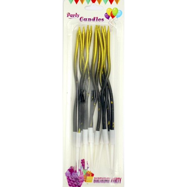 Свічка в торт 12шт+12підсв. "Спіральні" чорно-золота №A6/7025/7028(24)