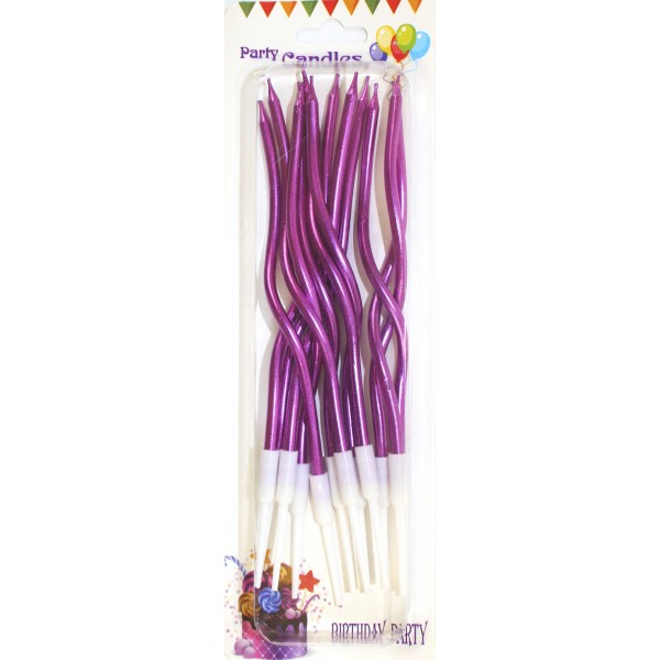 Свічка в торт 12шт+12підсв. "Спіральні" фіолетові перламутр №3803(24)@@@