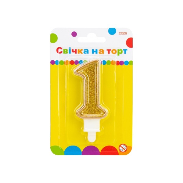 Свічка в торт Цифра-1 золотиста 7,62 см з блискітками (24) (288) MX622083-1