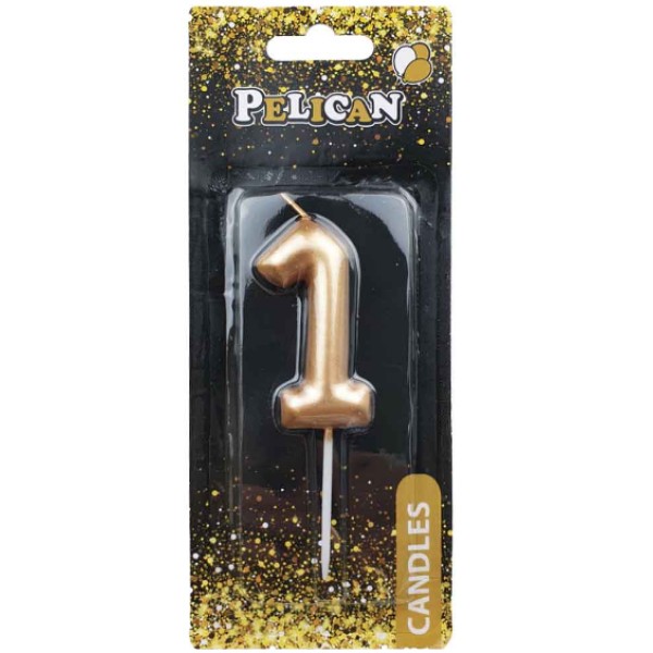 Свічка в торт Цифра-1 золото 6см Pelican (1) (12) (600) 866011