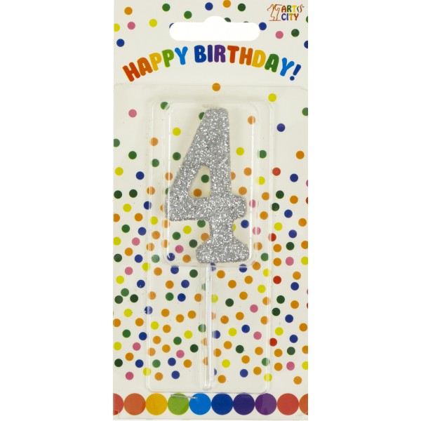 Свічка в торт Цифра-4 срібло на паличці (12)