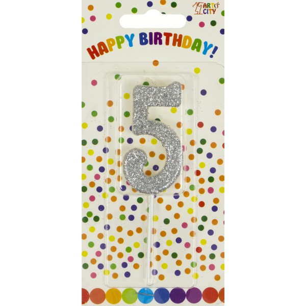 Свічка в торт Цифра-5 срібло на паличці (12)