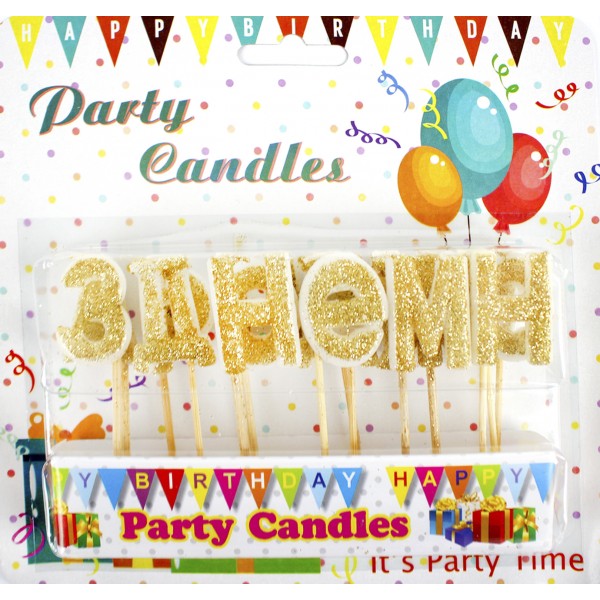 Свічки-літери "З днем народження" золото,присипка(34)