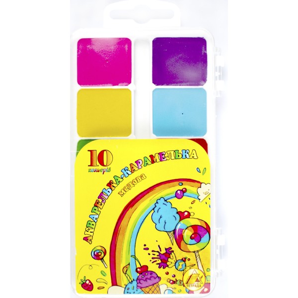 Акварель 10 кольорів акварелька-карамелька пласт/уп/Конотоп/(54)