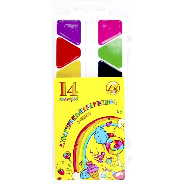 Акварель 14 кольорів Акварель і Я Акварелька-карамелька пластикова упаковка Тетрада (60) Акварель 14 кольорів Акварель і Я Акварелька-карамелька пластикова упаковка Тетрада (60) Акварель 14 кольорів Акварель і Я Акварелька-карамелька пластикова упаковка Тетрада (60)