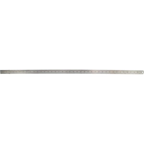 Двустороння лінійка 100 см, виготовлена із нержавіючої сталі, стійка до деформації. На одній стороні лінійки знаходиться 2 сантиметрові шкали, на іншій - 2 дюймові. Лінійка знаходиться в PVC чохлі.