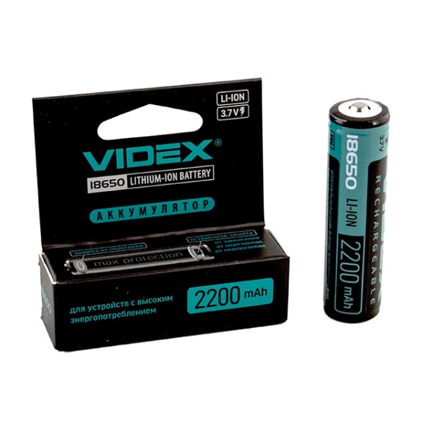Акумулятор Videx Li-ion 18650-R, 2200 mAh, захист/mbl/блістер 1 шт