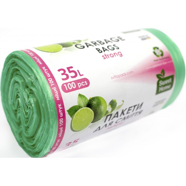 Пакети для сміття "Sweet home/Anna Zaradna" 35л 100шт міцні,зелені №4123(35)