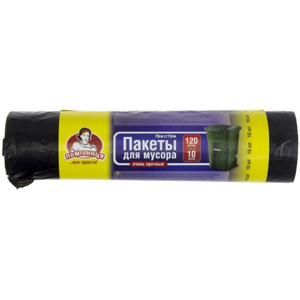 Пакети для сміття Помічниця 120 л 10 штук LDPE чорні 0194