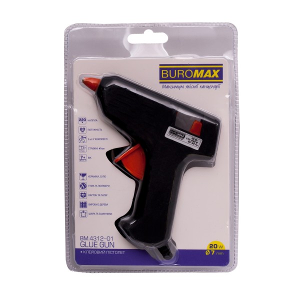 Пістолет для клейових стрижнів "Buromax" 7мм 20Вт №BM.4312-01(24)