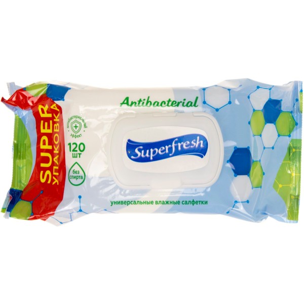 Серветки вологі Super Fresh Антибактеріальні 120 шт з клапаном (9) №2285