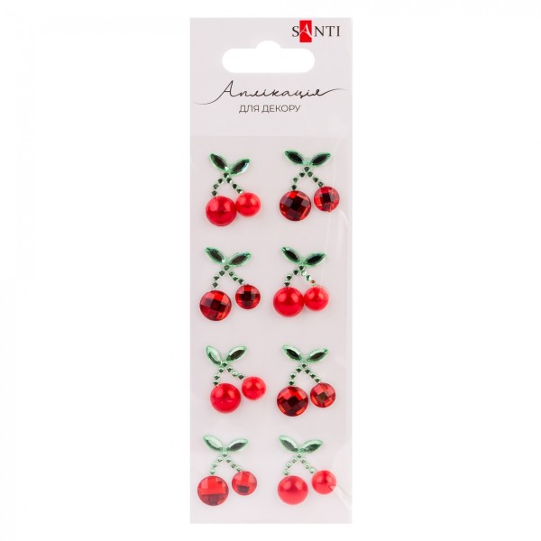 Аплікація зі стразів самокл. "Santi" Вишеньки 7х14см №743035(12) Аплікація зі стразів самокл. "Santi" Вишеньки 7х14см №743035(12)
