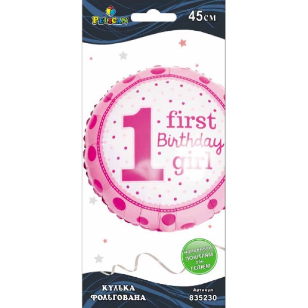 Кулька повітр. фольгована "1-й день народження дівчинки" 45см №835230/Pelican/(1)