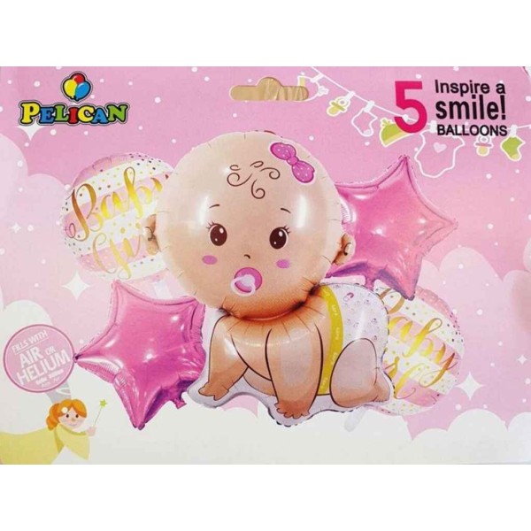Набір кульок повітряних фольгованих Немовля дівчинка 5 шт Pelican (10) №836942
