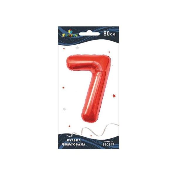 Кулька повітряна фольгована Цифра-7 80 см червона (1) 830847 Pelican