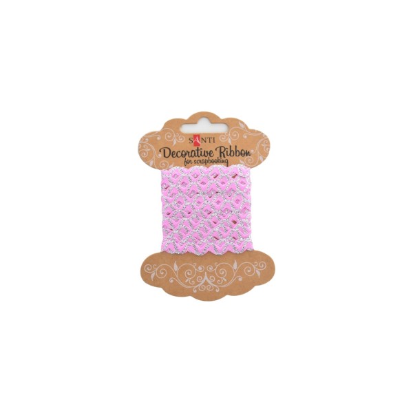 Декоративна стрічка Santi Хвиля рожева зі срібною ниткою 2 м 741372