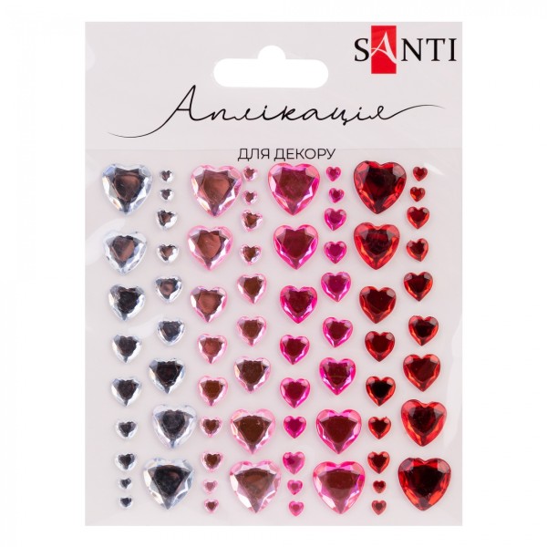 Аплікація зі стразів самокл. "Santi" Серця 9х10см №743031(12)